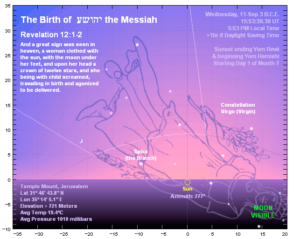 Adding another layer to this intricate story, some scholars point to intriguing astronomical clues that might align with Jesus’ birth. The Greek word for “wonder” in Luke 2:12 can be interpreted as “sign,” and some believe there could be celestial markers associated with Mary’s pregnancy. The signs of the Zodiac were originally not used in astrology but held symbolic meaning. Notably, the constellation Virgo in Revelation 12 is associated with Mary and motherhood, and on September 11, 3 B.C., the sun and moon were both positioned in Virgo. This date also coincides with Tishri 1 on the Jewish Calendar, the first day of the Feast of Trumpets, further adding to the potential significance.